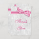 Les cartes plates de Merci élégant pour les baby showers etc. de la fille ont imprimé sur le papier d'invitation. Bel arrière - plan blanc de motif de damassé avec des remous et des flourishes fleuris un jolis, élégants, mignons, girly arc et image roses de ruban. Ces fascinants, chic, chic remercient yous sont admirablement sophistiqués et sont décorés/imprimés des deux côtés. J'ai les invitations assorties et d'autres produits assortis dans mon magasin. NOTEZ SVP : Tous les invitations sur Zazzle ont des images imprimées d'appartement. Arcs et images de rubans achetées de numérique-conception-par-Elena. Si vous avez besoin de n'importe quelle aide customisant votre produit svp me contactez par mon magasin et je serai heureux d'aider.