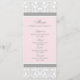 Le menu de dîner de mariage dans la lumière élégante rougissent le motif floral classique de rose, gris et blanc de damassé, personnalisable avec vos détails et disponible dans les produits assortis de mariage.