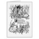 Une femme tenant un bol de bouillon, supports dans la porte de sa chaussure qui est entourée par des carottes et le rampement avec des enfants et un chien dans cette illustration vintage de la comptine d'un livre de 1912 enfants. La chaussure a un toit avec un jutting de tuyau de poêle les étapes supérieures et en bois.