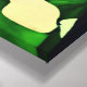Toile dans un portrait Art Déco moderne semi-abstrait d'une dame en kimono, tenant un ventilateur, contre un arrière - plan abstrait vert jade