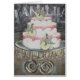 Les dames théâtrales exécutent des exploits extraordinaires de l'équilibre placé sur un gâteau trois-à gradins de vanille, soutenus par un plat argenté perlé de gâteau.