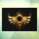 Shiny mechanische Flügel, mit Gängen und Messing rund Banner. Steampunk