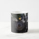 Eine Tasse mit einem Foto eines Motor-Dampfzuges.