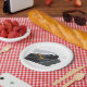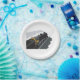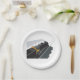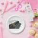 Ein schwarzer Dampfzug, der die Gleise entlang fährt. Dieses Design wirkt auf diese Paper-Teller sehr effektiv