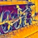 Ein Pop Kunstdesign von Dampfzugrädern.