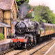 Ein Kunstdesign eines wunderschön restaurierten Dampfzuges und Kutschen.