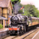 Ein Kunstdesign eines wunderschön restaurierten Dampfzuges und Kutschen.