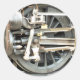 Ein fotografisches Design des Rades aus einem Dampfzug.