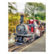 Eine schön restaurierte rote Dampfbahn und Wagen.