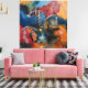 An original abstract painting bursting with vibrant colors and dynamic energy. Bold strokes of red, blue, orange, and black blend with layered textures and symbolic forms, inviting the viewer into a world of motion and mystery. Perfect for modern interiors or collectors of expressive, one-of-a-kind art.