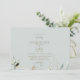 Botanische Gänse und Blattwerk Einladung Hochzeit. Hintergrund der hellen Seite. Es sind keine Eltern aufgeführt. Gold-Text.