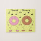 Lasst uns alle tanzen wie Erdbeeren und Schokoladendüsse! Sie tanzen und genießen einfach das Leben. Diese Donuts sind lustig und süß und bringen dem, der dieses Rätsel bekommt, vielleicht ein Lächeln ein. Personalisierbar. Originalwerk; c) Sharon Lee Hudson. Alle Rechte vorbehalten.