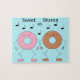 Lasst uns alle tanzen wie Erdbeeren und Schokoladendüsse! Sie tanzen und genießen einfach das Leben. Diese Donuts sind lustig und süß und bringen dem, der dieses Rätsel bekommt, vielleicht ein Lächeln ein. Personalisierbar. Originalwerk; c) Sharon Lee Hudson. Alle Rechte vorbehalten.