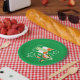 Dies sind niedliche Teller für den St. Patrick's Day oder für irische Feiern. Sie sind mit einem Kobold in grün und orange versehen, der eine Jig tanzt. Neben ihm ist eine grüne, weiße und orangefarbene Fahne mit dem Text IRISH darüber. Die grünen Kleeblätter vervollständigen das Bild, das auf einem hellgrünen Hintergrund platziert ist. Feierlich und farbenfroh! Stellen Sie sicher, dass Sie die passenden Papierservietten in unserem Geschäft sehen. *Clip Art, die in diesem Design verwendet wird, ist urheberrechtlich geschützt durch Encore Software, Inc., die die Nutzung für ihre Lizenzgeber erlaubt. Alle Rechte vorbehalten.