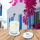 Griechisch-mediterrane Bougainvillea-inspiriert Dancing Queen Baby Dusche editable Rundpapier Untersetzer. Lassen Sie sich mit der Babydusche des Themas Mamma Mia vom Charme des Mittelmeers verzaubern! Feiern Sie Ihre kleine Ankunft inmitten der blauen und weißen Fliesen, die an das Meer von Santorin erinnern. Die Einladungen werden mit spielerischer Eleganz und rosa Bougainvillea gemacht, während die Zeichen und Dekoration farbenfroh sind und die Babydusche-Feier schön hervorheben. #zazzlemade
