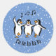 Dancing Singing Pinguins Design Sticker auf einem verschneiten Hintergrund, mit anpassbarem Text und Farbe.