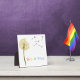Rainbow-Samen brechen mit Break Free text von einem schlichten Löwenzahn ab. Sei dein Regenbogen-Selbst.