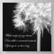 Dieses Makrofoto zeichnet sich durch eine elegante Blume aus Lüster aus. Dieses Foto wurde in einem Feld mit schwarzem Hintergrund hinter der Blume aufgenommen. Der flauschig weiße Samenkorb verliert wirklich Pop aus dem Hintergrund. Sie können so viele Details in dieser schönen Blume sehen. Meine Dichterfreundin Michelle Balletto-Wooten wurde von diesem Leuchter-Foto inspiriert, ein Gedicht in Form von Haiga zu schreiben. Haiga ist das Gedicht für sich und Haiku ist, wenn das Gedicht mit einem Bild gepaart ist. Die Poesie ist in einem weißen, eleganten Skript geschrieben. Das Gedicht lautet: "Weiße Weisheit der Freude tanzt/ Dandelion Ankündigung/ Der Frühling ist auf dem Weg."