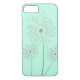 Ein wunderschönes Design einer Blume aus einem Löwenzahn, die in der Brise vor einem türkisblauen, eisgrünen Hintergrund weht. Diese einfache Kunst modernes Blumendesign steht auf einem weißen Hintergrund, um Einfachheit, Reinheit und Schönheit zu bezeichnen. Die Hintergrundfarbe kann nach Ihrem Geschmack angepasst werden. Mit dieser eleganten Telefonabdeckung heben Sie sich von der Masse ab.