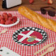 Dänemark - Tafel, Büffel kariert und dänische Flag Pappteller