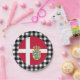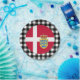 Teller: Rustikale dänische Party-Teller mit dänischer Flagge, umgeben von schwarz-weißem Büffel karierte Muster - Liebe mein Land, festliche Dekoration, nationale Patrioten / Sportfans