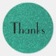 Eine helle und lebendige grüne Glitzer-Textur, die Glitzern und glänzt mit Leben auf einem Aufkleber, der danke sagt.