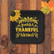 Dankbar, Dankbar, Selig Typografie in Gelb mit Sonnenblumen in schwarz mit einer Sonnenblume in der Ecke.