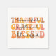 Das Design mit dem Titel "Dankbar, Dankbar, Gesegnet" ist eine lebendige und aufregende Darstellung der Erntedank-Saison. Es enthält drei Schlüsselwörter, von denen jeder ein Gefühl von Dankbarkeit und Positivität ausdrückt.