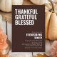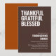 Feiern Sie die Saison mit dieser dankbar dankbaren, gesegneten Freundschaftsdinner Einladung. Diese minimalistische Einladung, die mit fett moderner Typografie in warmen Herbst-Schokoladenbraun-Tönen gestaltet wurde, spiegelt den Geist der Dankbarkeit und des Zusammenlebens perfekt wider. Ideal für Ansammlungen im Erntedank oder für Party im Herbst oder Potlucks, ist diese bearbeitbare Vorlage leicht für Ihre Feier zu personalisieren.