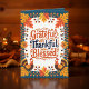 Diese hübsche Erntedank-Karte umrahmt Ihre Nachricht in einer lebendigen Garage mit orangen und gelben Blätter, Beeren und Blumenakzenten. Die Worte "dankbar", "dankbar" und "gesegnet" werden in der Mitte gestapelt, flankiert von zwei bezaubernden Truthühnern aus Cartoon. Die tiefe aquamarine Grenze bietet einen auffallenden Kontrast, während der Insider-Text vollständig für Ihren persönlichen Urlaubssgruß anpassbar ist.