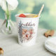 Das Design präsentiert eine Auswahl an köstlichen Kuchen, reifen Birnen und knusprigen Äpfeln, die alle in warmen, erdigen Brauntönen gehalten werden, die das Wesen des Herbstes einfangen. Die Farbpalette erinnert an den gemütlichen, rustikalen Charme der Saison, während die Mischung aus Retro und moderner Typografie eine stilvolle und zeitgenössische Touch verleiht. Diese Papiertasse verbindet Tradition mit moderner Drehung und macht sie zu einer idealen Wahl, um Ihre Lieben zu einem unvergesslichen Erntedank-Fest einzuladen.