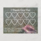 Mein Pfarrer erzählte uns, wie dankbar der Schlüssel zum Rückfall ist. Sie erzählte, wie ihr Pfarrer eine Karte behielt, die zehn Dinge auflistete, für die er Gott dankbar war. Als schlechte Zeiten, als er abgestürzt war, nahm er es heraus und ging durch die Liste, erinnerte sich an jedes hinterantwortete Gebet, jede Rettung, jeden Segen von Gott. Als er das Ende der Liste erreichen würde, würde sein Herz wieder voller Freude sein. Ich hoffe, diese Karte hilft Ihnen und Ihren Brüdern und Schwestern in Christus. Das Herz ist es, dass du mit deinen eigenen Gründen, Gott zu danken, auffüllst.