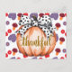 Begrüßen Sie den gemütlichen Charme des Herbstes mit diesem dankbaren Kürbis mit gepunkteter Schleife Design. Mit einer schön illustrierten generativen Kürbis, verziert mit einer schicken schwarz-weißen Schleife und eleganter Schrift, vereint dieses Design perfekt die ländliche Wärme mit modernem Stil.
