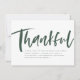 Dieses Erntedank-Dinner-Angebot enthält ein feines Pinselskript "dankbar" in einem reichen Fallschatten des Jägergrün sowie eine moderne Typografie für Ihre Party-Details. Diese Einladung koordiniert mit der Lea Delaveris Design Thankful Erntedank Kollektion.