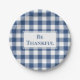 Dankbares Blue White Gingham Karierter Erntedank Pappteller
