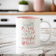 Beginnen Sie Ihren Tag mit einer freundlichen Einstellung. In unserer handgeschriebenen Typografie-Tasse finden Sie das Zitat "Beginnen Sie jeden Tag mit einem Dankeschön" in pastellfarbenen, handgeschriebenen Kalligraphieskripten, die mit Wimpern und einer Herzillustrierung geschmückt sind.