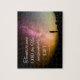 Rätsel mit dem wunderschönen Nachthimmel mit der Silhouette, dass jemand nach oben schaut und dem Bibelvers von 2 Korinthen 9:15, "Danke an Gott für sein unaussprechliches Geschenk." Foto von G. Rakozy/Unsplash.