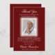 Elegante Dankbarkeit Sie Beerdigung, Beileid, Unterkunft Karten geben / aussenden Gäste / Besucher nach der Weitergabe einer geliebten Person, Beerdigung Service. Rahmen in weißem Halo auf rotem bordeauxfarbenem Hintergrund. Einfach zu fügen Foto / Bild und Text. Alle bearbeitbaren Schriftart, Farbe, Größe.