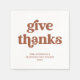 Diese einfachen und bohligen Servietten sagen "danke" in Retro-Terrakotta Typografie auf weißem Hintergrund und sind die perfekte Ergänzung zu Ihrem Erntedank oder Friendsgiving-Dinner.