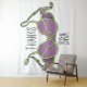 Ein lila, zentraler, limiengrüner BH mit dem Sprichwort "Danke Bra".