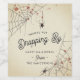 Spooky Halloween-Party favorisieren Design mit blutgesprenkelten Spinnennetzen an den Ecken, mit hängender Spinne und den Worten "Danke, dass du vorbeigelassen hast." Anpassen mit einer Nachricht und einem Namen unten.