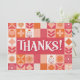 Mit dieser vibrierenden Dankbarkeit bedanken Sie sich für die flache Grußkarte! Mit fett weißem Schriftzeichen auf einem fröhlichen Flickwerk aus rosa, orangefarbenen und orangefarbenen Blumenmustern und geometrischen Mustern ist dieses Design perfekt für Dankeschön-Noten nach Hochzeiten, Geburtstagen, Babyduschen oder einfach nur um Wertschätzung zu zeigen.