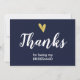 Elegante GoldImitatfolien-Herzhochzeit danken Ihnen für Sein meine Brautjungfernkarte mit modernem weißem Skript. Die Front und die Rückseite der Karte ist im schicken Marineblau.
