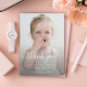 Elegante personalisierte rot rosa Kinder Geburtstagsparty Dankeschön-Karte mit individuellem Foto mit schwarzem Overlay. Sie können Textfarbe, Schriftart, Größe und Position leicht ändern, indem Sie auf den Knopf "IT ANPASSEN" klicken.