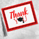 Schreiben Sie Ihre Dankeschön Notizen mit diesem Dankeschön Grad Cap Red und Black Postcard. Es verfügt über eine übergroße Graduierung mit "Danke" in einem roten, modernen Drehbuch-Schriftart. Personalisieren Sie es mit einer Notiz auf der Rückseite.