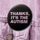 Ein weiterer sarkastischer Knopf von JessicaAmber - frag über Sonderanfertigungen! Dieses anpassbare Button bietet eine einfache Reaktion, um jedem zu geben, der ein unerwünschtes und unsensibles Kompliment gibt, wie zum Beispiel über Hyperfixierung oder dünne vom Vergessen zu essen. Es heißt "Danke, es ist der Autismus", den man ändern kann, um zu sagen, was immer man will. Text ist in einem klobigen pastellrosa Schriftart. ⭐ wurde am 3. April 2023 erstellt. Weitere Designs für psychische Gesundheit finden Sie in meinem Geschäft: zazzle.com/store/jessicaamberartist ⭐ Für benutzerdefinierte Bestellungen, E-Mail an jessicaamberartist+zazzle@gmail.com