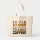Danke für Koffein! Es bringt dich dahin, wo du im Leben bist! "So weit so gut. Danke, Kaffee!" Diese Tasche wird eine Menge Kaffeebohnen transportieren.