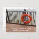 Zeigen Sie Ihrem Freund oder Familie Ihre Anerkennung, die dort war, Sie zu stützen, wenn Sie starke Zeiten (z.B. Krise, Familienprobleme) mit diesem Bild durchlaufen. Bild einer Lebenboje mit einem Seehintergrund. Mitteilung liest" Dank für mich über Wasser behalten, während ich ertrank."