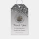 Vielen Dank, dass Sie ein Geschenk-Tag mit Black Glitzer fallen auf einem schicken silbernen, grauen Hintergrund. Einzigartige schwarze und goldene Zahl 16 in einem silbernen Rahmen "dots" Muster.