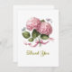 Diese elegante Dankeschön-Karte erfasst das Wesen der herzlichen Dankbarkeit mit ihrem delikaten Design. Die Karte mit ihren rosa Hydrangeas in voller Blüte, gepaart mit üppigem Grün, strahlt ein Gefühl von natürlicher Schönheit und Romantik aus. Ein anmutiges rosa Band Krawatte das Design sanft zusammen und verleiht ihm eine Touch von Charme und Eleganz. Auf der Rückseite der Karte ist die warme Botschaft, den Dank für Gäste, die an Ihrer Hochzeitstag feiern geteilt haben", geschrieben in einem raffinierten, fließenden Drehbuch.